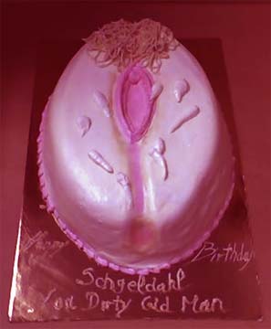 Bachelor erotic old grey haired pussy shaped cake